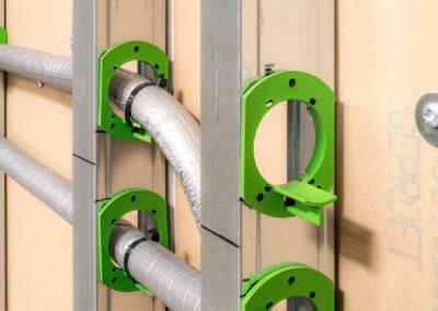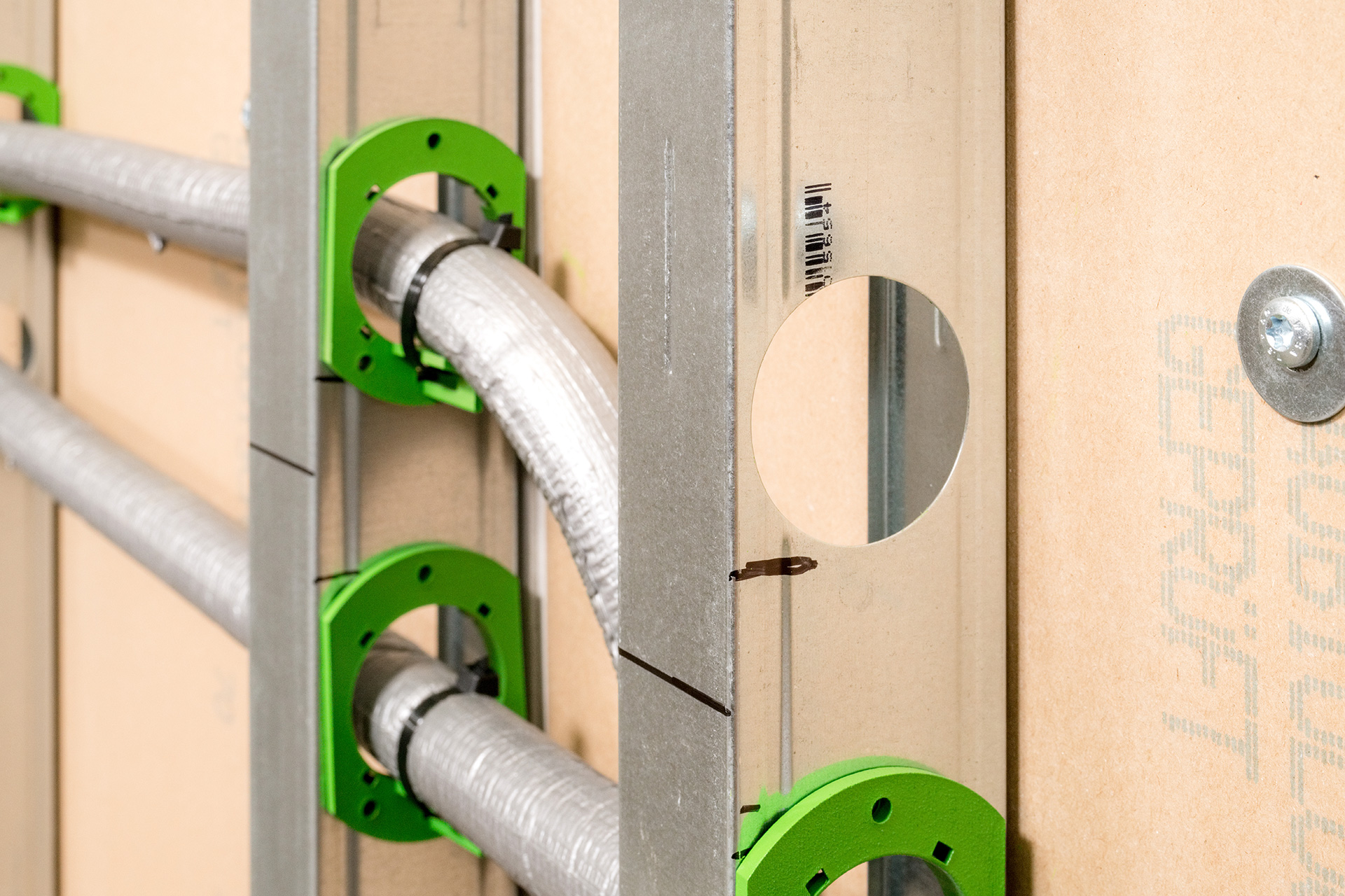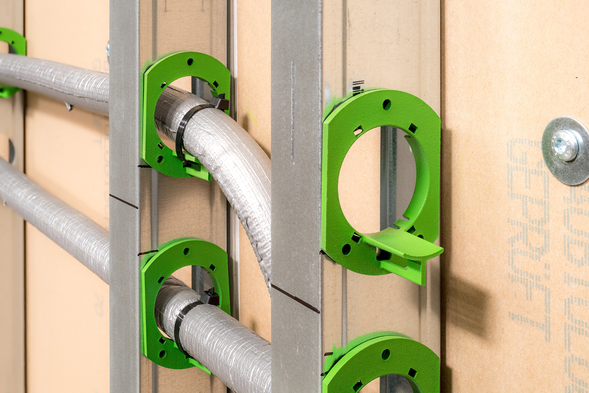 Das presssta-System ist ein Pressstanzwerkzeug, welches – mittels Verwendung einer handelsüblichen Fittingpressmaschine – binnen kürzester Zeit, saubere und vor allem normgerecht ausgeführte Löcher in Trockenbau-Ständerprofile stanzt. Die mitgelieferten Clips sorgen für eine hervorragende Führung des Rohres und schützen es vor Verletzungen während des Verlegens. So sparen Installateure Zeit und bares Geld.